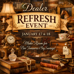 Start the new year with something special at our Dealer Refresh Event, happening January 17th and 18th at the antique mall. This two-day shopping event highlights special pricing as our dealers make room for exciting new inventory arriving for the year ahead.